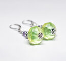 淡いバイカラーアンティークウランガラスとシルバービーズ、アメジストのピアス