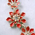 フェイクパールとクリアラインストーンがあしらわれたマットなレッドのエナメルで色付けされたフラワーのヴィンテージネックレスです。