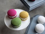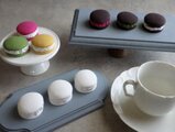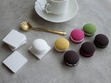 ミュージアムカフェ「la neige(ラ ネージュ)」で焼き菓子が新メニューに加わりました!手のひらに乗せると可愛い、小さなマカロンができました。マカロン1点と台座が1組セットになっての販売です。