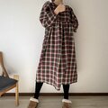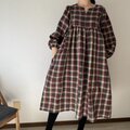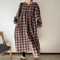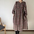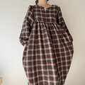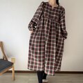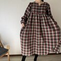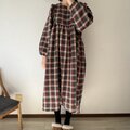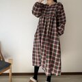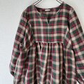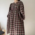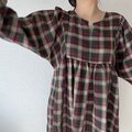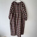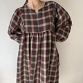 チェック柄のコットンガーゼ生地を使用した、ふんわりシルエットのヨークギャザーワンピース。