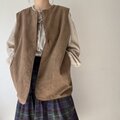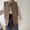 ゆったりめのシルエットのウール& コーデュロイ生地のリバーシブルベストです。