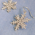 着用した時にモチーフが揺れるよう、ピアスの金具をフック式にしました。雪の結晶が降っているようで、キュンと切ない気持ちに。