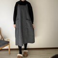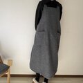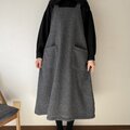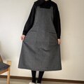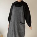 秋冬にぴったりな、心地よいウール100%素材で仕立てられたウールエプロン風ワンピースです。