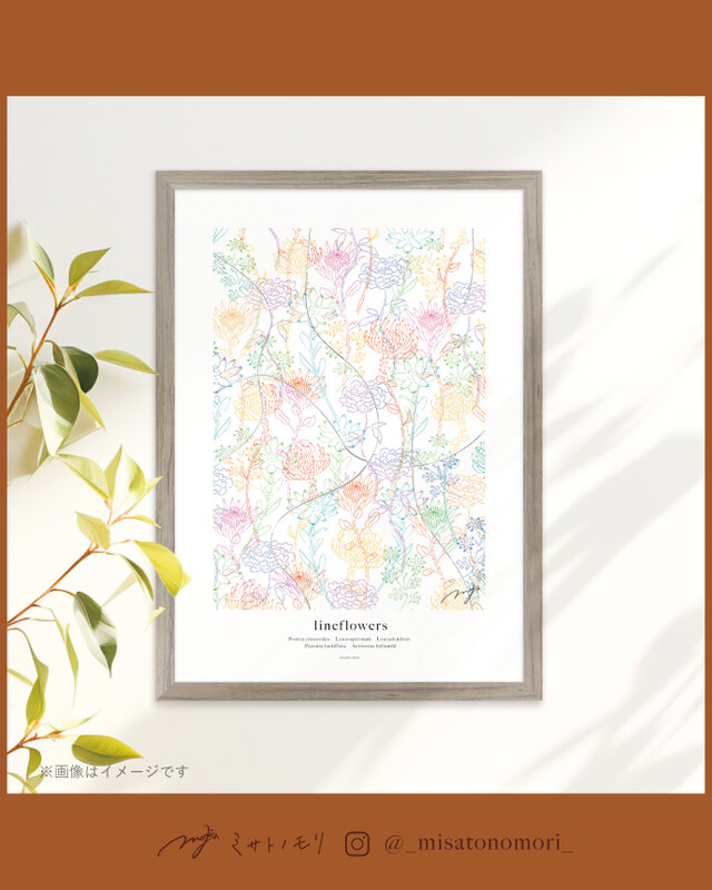 ミ サ ト ノ モ リ|"さりげなくお洒落"を叶えるA4ポスター『lineflowers』 -white- 線画の花柄