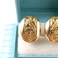 オーバル型のゴールドメタルにスワール状のチューリップの模様が施されたヴィンテージイヤリングです。