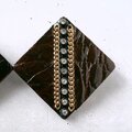 ブラックのベースプラスチックにダークブラウンのフェイクレザー、ゴールドメタルチェーン、クリアラインストーンがあしらわれた大ぶりな菱形のヴィンテージイヤリングです。