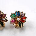 colorful marquis rhinestone faux pearl flower ヴィンテージピアス