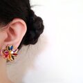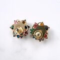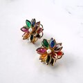 中央にフェイクパールがあしらわれたベゼルセットのカラフルなマーキスラインストーンの花びらが立体的にデザインされたフラワーのヴィンテージピアスです。