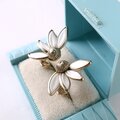 1910年にニューヨークにて創業した老舗コスチュームジュエリーメーカーTRIFARI(トリファリ)の1950年の広告にも掲載されたAlfred Philippeがデザインを手掛けた“Petaltime”シリーズの4枚のミルクガラスの花びらが横から扇状に広がるようにデザインされたヴィンテージイヤリングです。