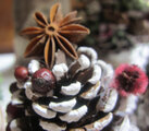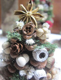 *真ん中ちょこんと愛嬌のある 白く染まっている松かさのツリー