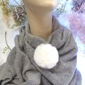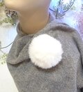 ストールピン ブローチピンファーポンポン 直径8㎝ ホワイト