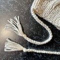 頭頂部を絞らずに筒に編み、はぎ合わせ、両角にポンポンをつけました。