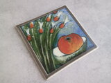 裏面には、「Chrisへ、Mariより。Lassakseltaより、1997年のクリスマスに」と手書きのメッセージが残されており、当時フィンランドで大切な贈り物として選ばれたことがうかがえます。人の想いがそっと宿る、小さなアートピースです。陶板には壁掛け用シールがついているので簡単にお部屋に飾っていただくことが可能です。