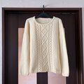 キナリのメリノウールでアラン模様のプルオーバーを編みました。