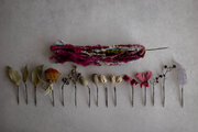 インドの伝統的衣装のサリーを裂いたリボンとお花を合わせました