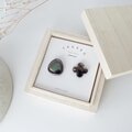 木の箱から手のヒラにピアスを出すまでのストーリーを感じつつ、喜びと嬉しさでいっぱいです。 素敵なピアスありがとうございました 大切にします