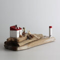 先ほど受け取りました。 流木の風合い、カモメ、岬の先にある白い壁の一軒家…ノスタルジーに誘われ.風や波音が静かに聴こえてきそうな雰囲気のある作品です。早速、リビングの棚に飾りました。 ありがとうございました!