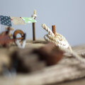 流木、ねじ・釘(赤錆加工)、ホワイトウッド(欧州スプルース、ドイツトウヒなど)、ステイン、ペンキ等で製作。ヤスリでダメージ感を演出しています。「潮騒とカモメの鳴き声、風の音」を感じていただければ幸いです。