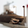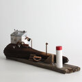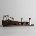 流木、ねじ・釘(赤錆加工)、ホワイトウッド(欧州スプルース、ドイツトウヒなど)、ステイン、ペンキ等で製作。ヤスリでダメージ感を演出しています。「潮騒とカモメの鳴き声、風の音」を感じていただければ幸いです。
