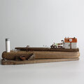 流木、ねじ・釘(赤錆加工)、ホワイトウッド(欧州スプルース、ドイツトウヒなど)、ステイン、ペンキ等で製作。ヤスリでダメージ感を演出しています。「潮騒とカモメの鳴き声、風の音」を感じていただければ幸いです。