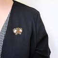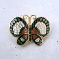 ブラック、ホワイト、レッド、グリーンのエナメルで色付けされた蝶の七宝焼のヴィンテージブローチです。