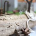 流木、ねじ・釘(赤錆加工)、ホワイトウッド(欧州スプルース、ドイツトウヒなど)、ステイン、ペンキ等で製作。ヤスリでダメージ感を演出しています。「潮騒とカモメの鳴き声、風の音」を感じていただければ幸いです。