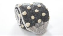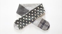 グレー系のウール混やボア、フリースなどの秋冬生地をつなぎ、内側には編み込み風のジャガードボアを合わせました。シンプルな一回結びのほか、首回りにふた巻きし、両端のスナップボタンで留めることが出来ます。