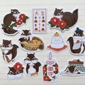 シマリスの年末年始 椿咲く森の中で フレークシール 30枚入り【シマリス8柄×3枚、おみくじ、お守り、鏡餅×2枚ずつ】