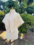 大判で、肩に羽織ると、腰のあたりまで覆われます。また厚みがあり、肩掛けの他、膝掛けや襟巻きとしても非常に暖かいです。