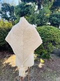 北海道勇払郡占冠村の二ニウファーム様サフォーク羊の羊毛を紡いで編んだ三角形のショールです。