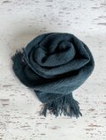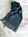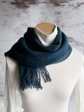 レースのように穴の開く織り方、キャンバス織りのマフラーです。縮絨後は穴は塞がり、その部分が「井桁」模様で浮き出ています。