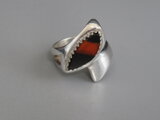 リングのサイズは16号、重さは8g、最大幅は23mm、手のひら側は6mm、金属部分は純銀です。