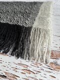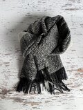 巻いた時、色の違いがデザインになれば良いなと思い、片側に淡いグレーと濃いグレーの経糸を数センチづつ入れました。