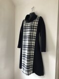 と、真冬に着るワンピースを作ってみました。上質の厚手のコート地とネイビーブルーのウール混ストレッチ素材を合わせて、しっかり身体を寒さから守るワンピースです。総裏付きです。