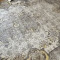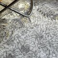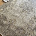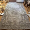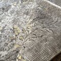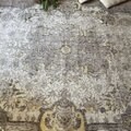 光の当たり方でほんのり表情が変わる、グレージュをベースにした大判のヴィンテージラグです。ところどころに入った控えめなイエローが、落ち着いた雰囲気の中に優しい華やかさをプラス。細かなボタニカル模様とメダリオンデザインが絶妙に溶け合い、空間に品の良い奥行きをつくってくれます。大きいサイズならではの“敷くだけで絵になる存在感”がありながら、派手すぎず馴染みやすいので、インテリアのテイストを選ばず使いやすい一枚です。