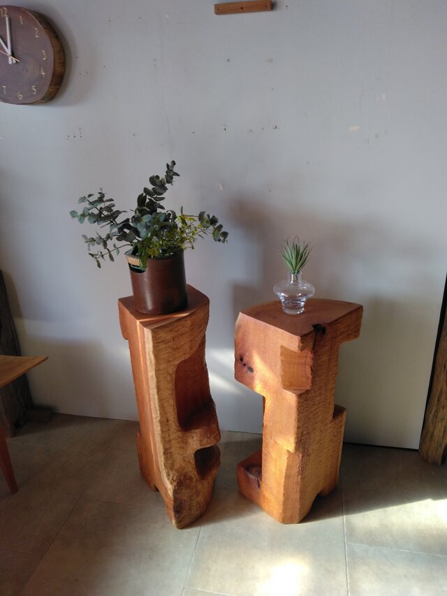 凹みに脚をかけカウンターチェアとしたり、サイドテーブル、飾り棚、オブジェなどに多目的に使用頂け2点使いではテーブルの脚材としてもご利用いただけます。