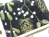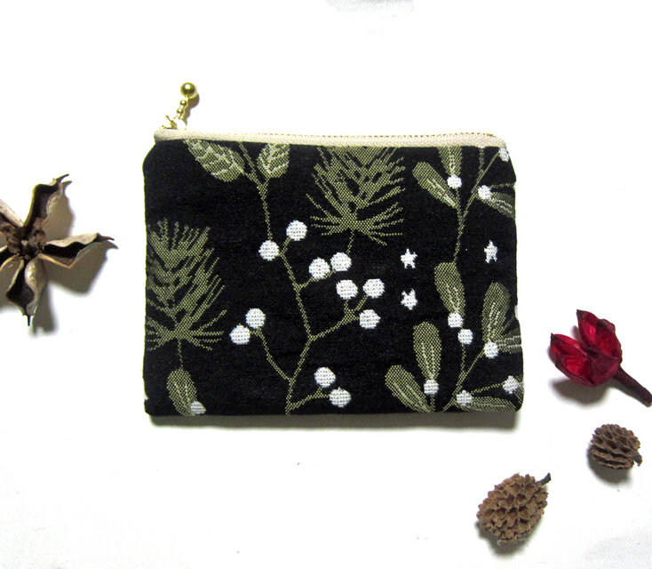 フランス生地 クリスマス(S)ヒイラギに舞い降りた雪のポーチ コスメ入れ カード入れ のコピー