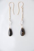 コッパーオブシディアンとダブルポイント水晶のピアス 14kgf