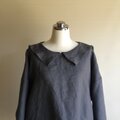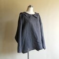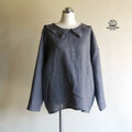 リネン◆ひらっとカラーのロングセーラーブラウス 長袖◆ブルーグレー◆フリーサイズ(中厚、リネン100%)