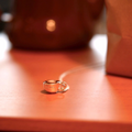 『COFFEE』と刻印されたスターリングシルバー製のカップに、カプチーノはひとつひとつ元バリスタの手描き。エスプレッソにふわふわフォームミルクを注ぐイメージで制作しています。ツヤツヤぷっくり美味しそうな仕上がりです。