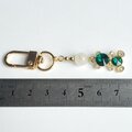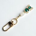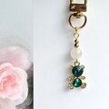 深いエメラルドグリーンが輝く熊チャームに優しい月の光を宿すムーンストーンを合わせた上品で可愛らしいキーホルダーです。