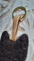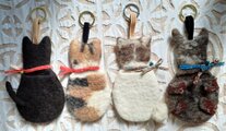 首輪付近に数本の指を入れる穴があいています。指を入れてねこをなでなでしてください。ウ―ル100%のやわらかい肌触りです〇