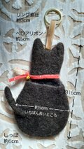 くろねこチャーム :黒色〈羊毛フェルト キーホルダー バッグチャーム ブロックプリント ねこなで〉