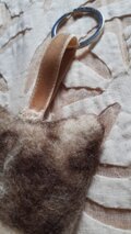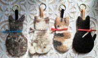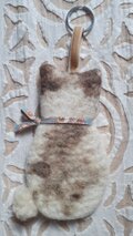 しろねこチャーム :オフホワイト〈羊毛フェルト キーホルダー バッグチャーム ブロックプリント ねこなで ねこ〉