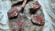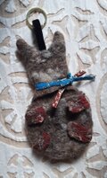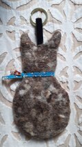 サビ猫チャーム :焦げ茶色〈羊毛フェルト キーホルダー バッグチャーム ブロックプリント ねこなで ねこ〉