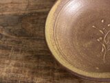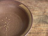 素地に野花を描き伊羅保釉を施釉してから焼成しています。