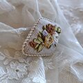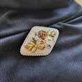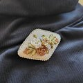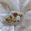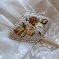 少しざっくりしたリネンにシックな色合いの薔薇のリボン刺繍です。