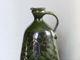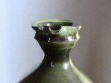 釉薬には自家製灰をブレンドしたオリーブ釉と透明釉を使用。