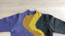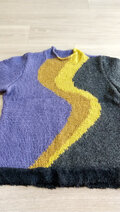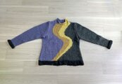 作品の中心に、大きな流れがあるようなデザインの、プルオーバー セーターです。