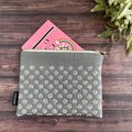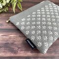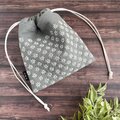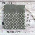 濃いグレーのハーフリネンの生地に刺し子した、小さめポーチと小さめ巾着袋の、ちょっとお得なセットです。